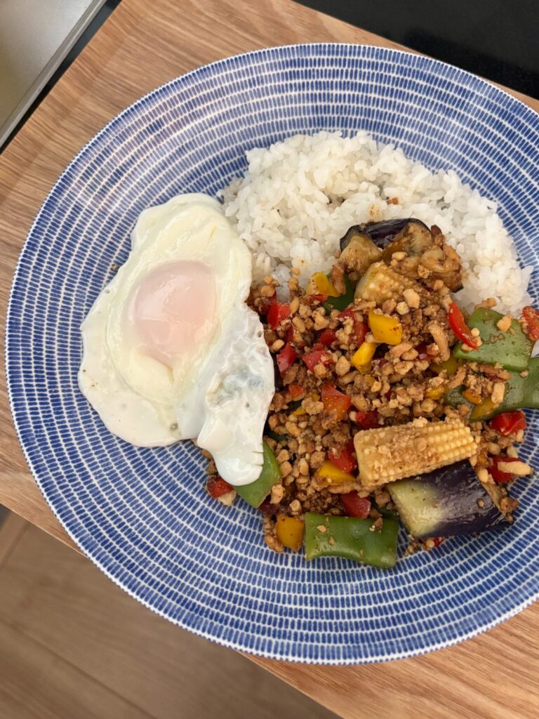 私が食べたのは「チキンガパオ」で本格的だけど辛すぎず、量もちょうどよかったです。何より野菜が豊富に入っているところが嬉しい!